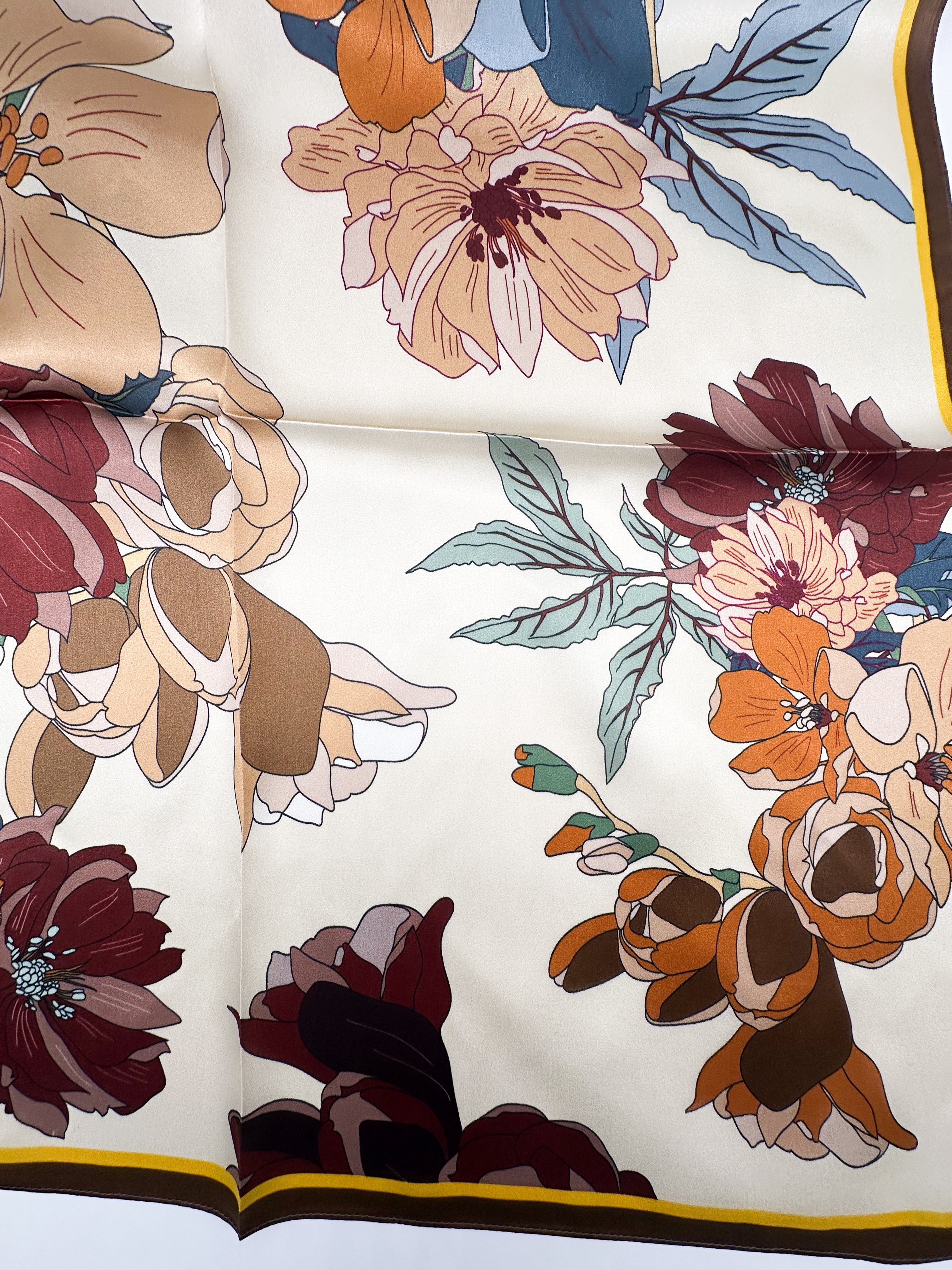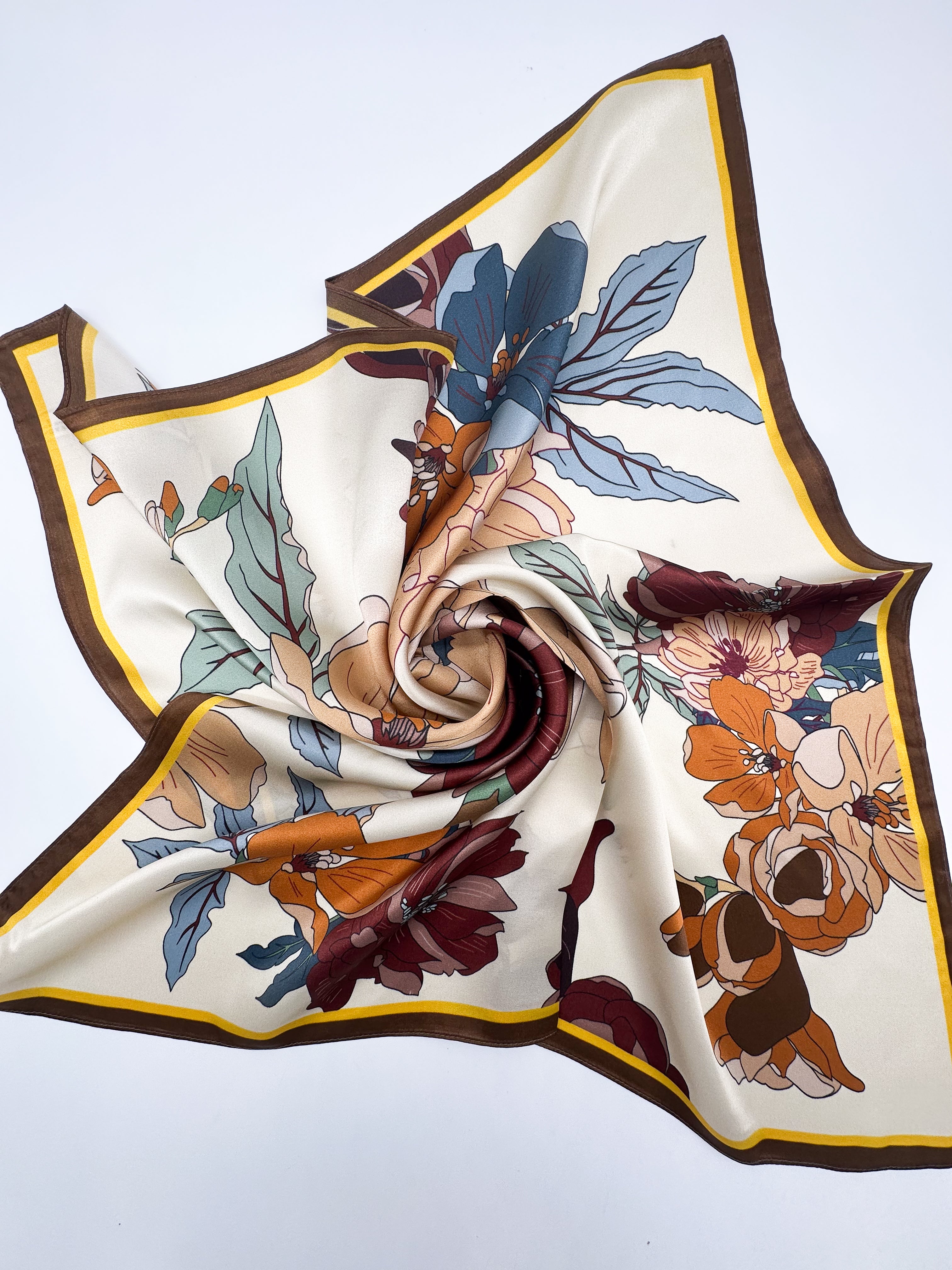 Natural silk scarf 68x68 cm suitable for wearing with dresses, blouses, and sweaters, as well as tying around the wrist or as an accessory for a bag.