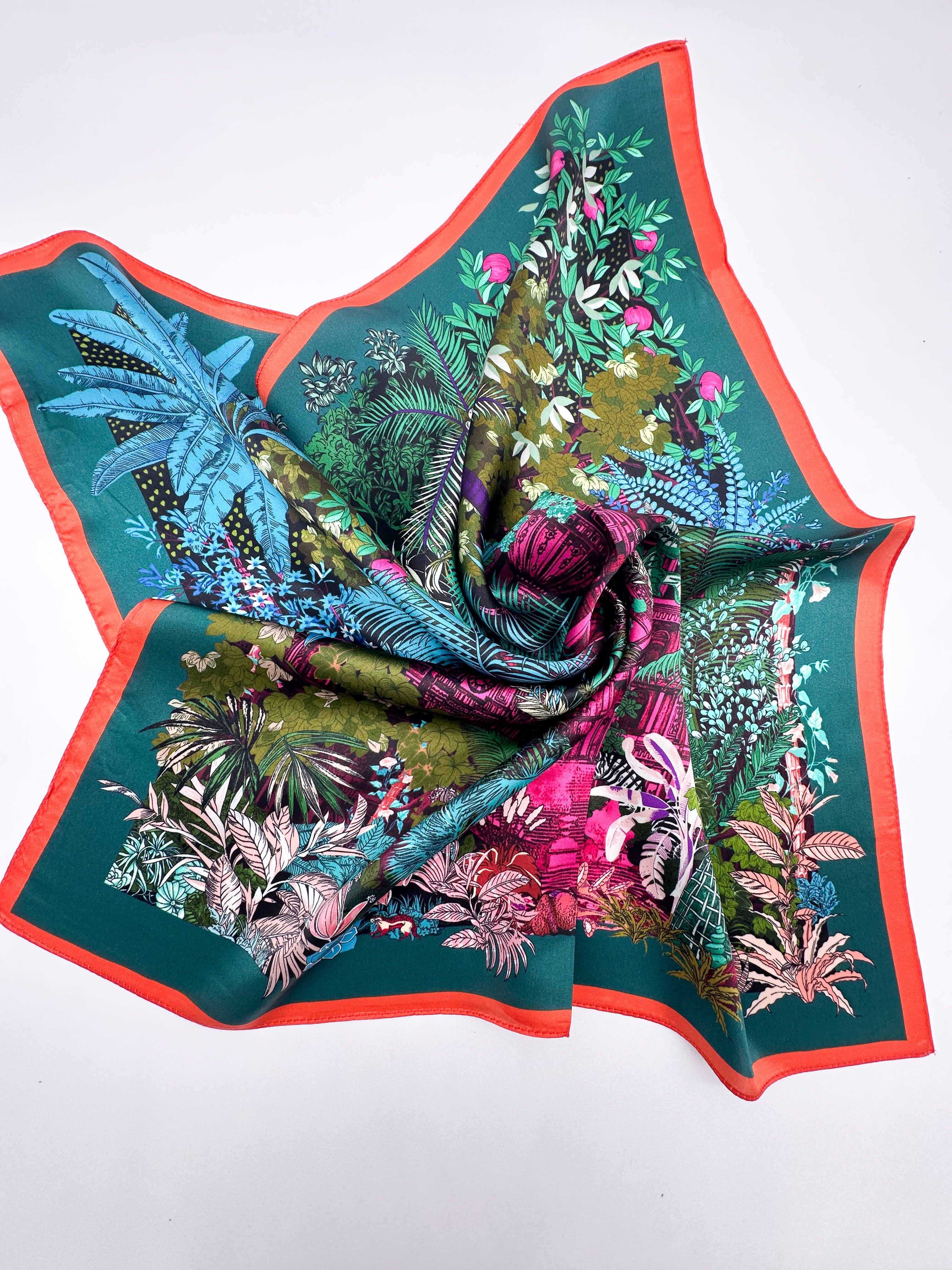 Natural silk scarf 68x68 cm suitable for wearing with dresses, blouses, and sweaters, as well as tying around the wrist or as an accessory for a bag.