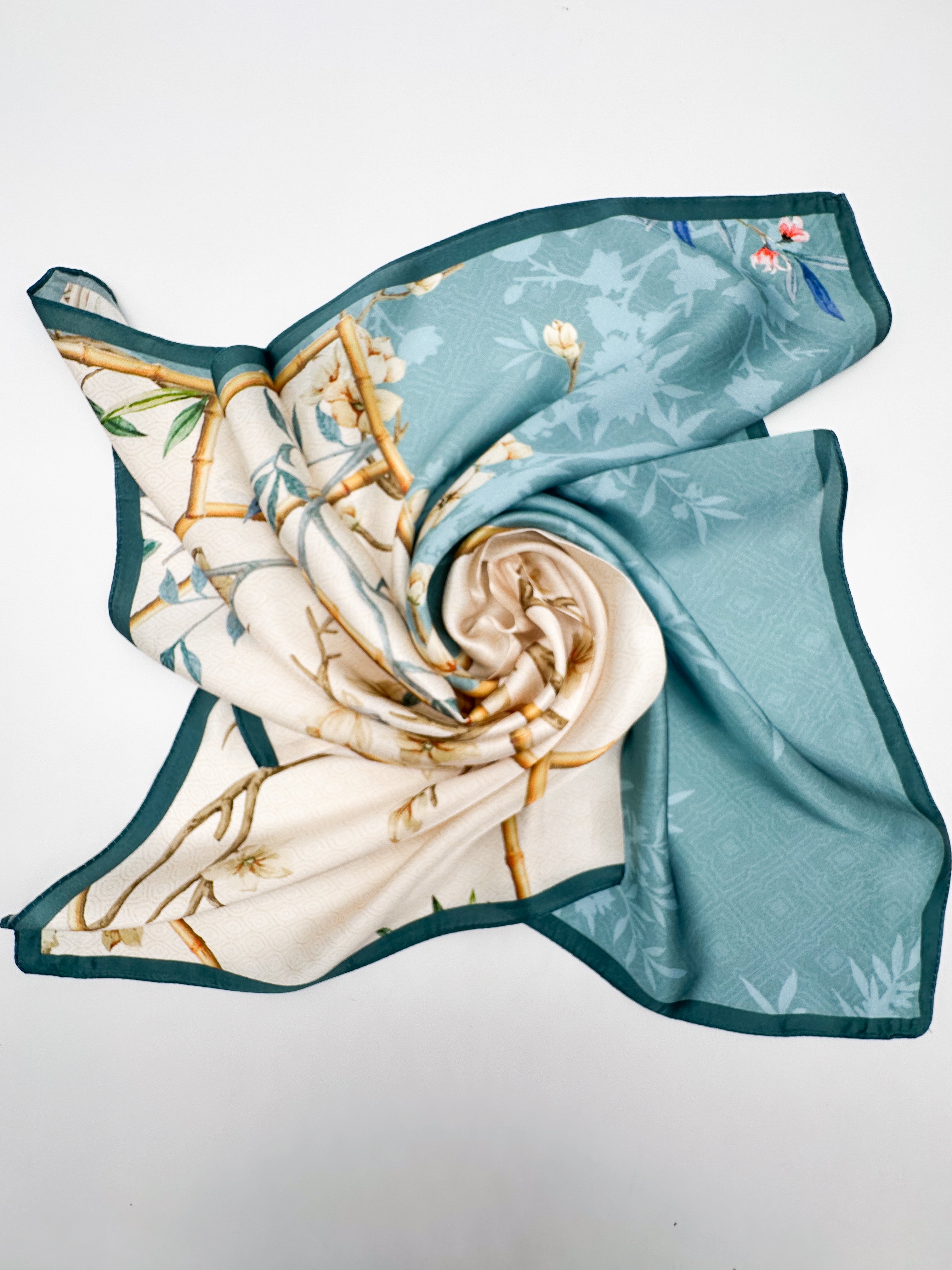 Natural silk scarf 68x68 cm suitable for wearing with dresses, blouses, and sweaters, as well as tying around the wrist or as an accessory for a bag.