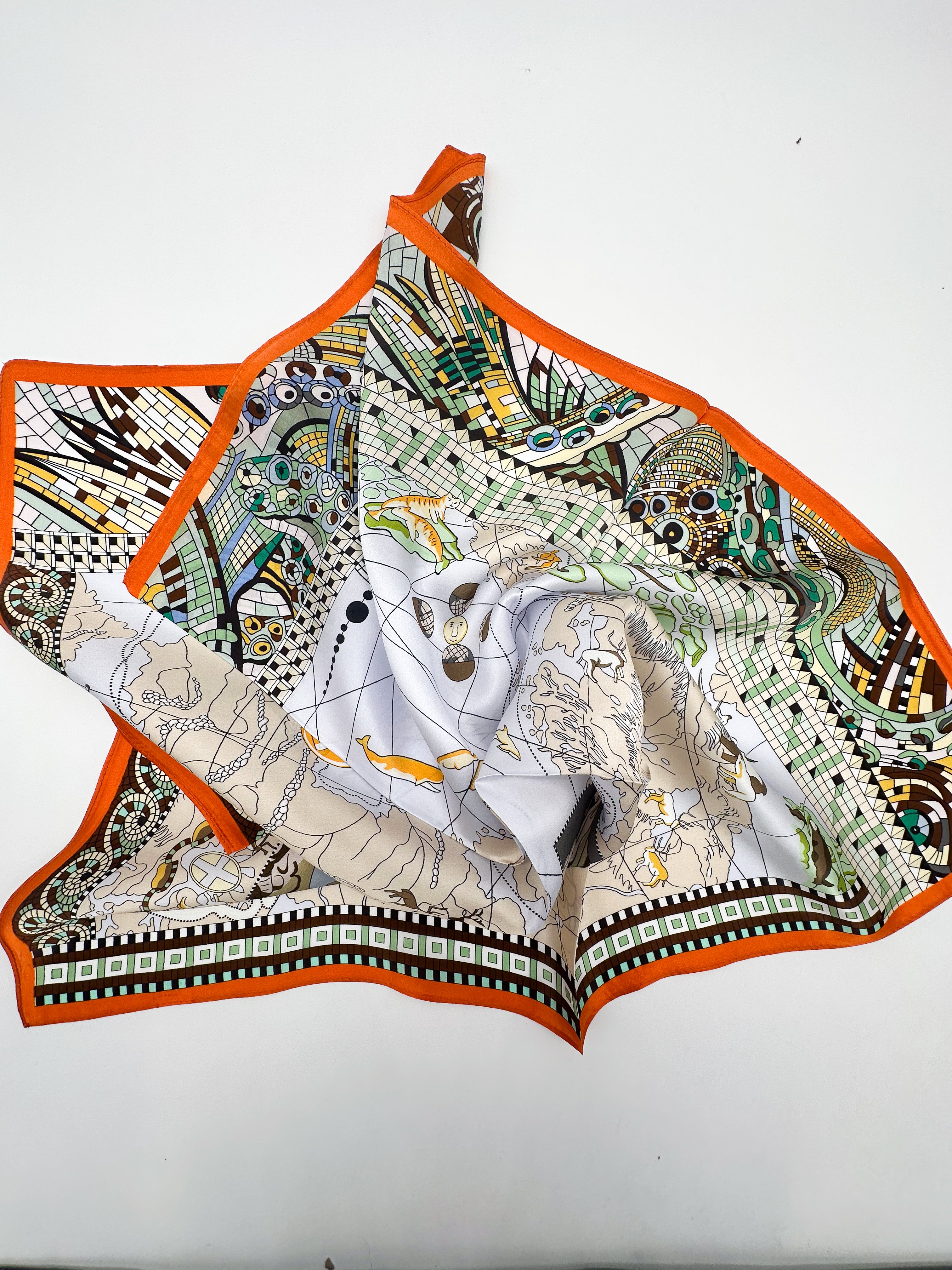 Natural silk scarf 68x68 cm suitable for wearing with dresses, blouses, and sweaters, as well as tying around the wrist or as an accessory for a bag.