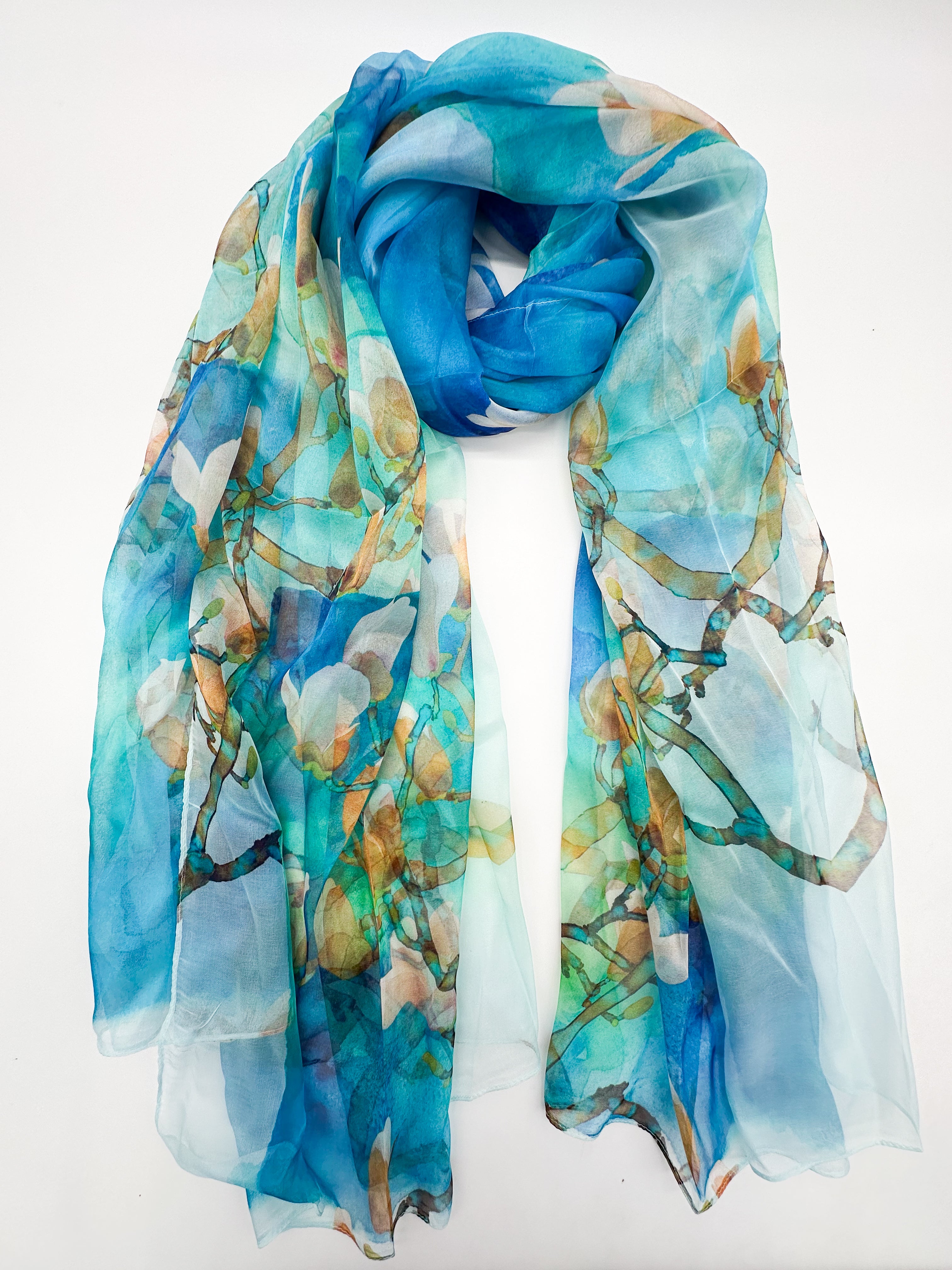 The natural silk chiffon scarf is perfect for wearing with a dress, top, as well as a spring coat or other light outerwear! This scarf is airy, sheer and lightweight with a beautiful drape.
