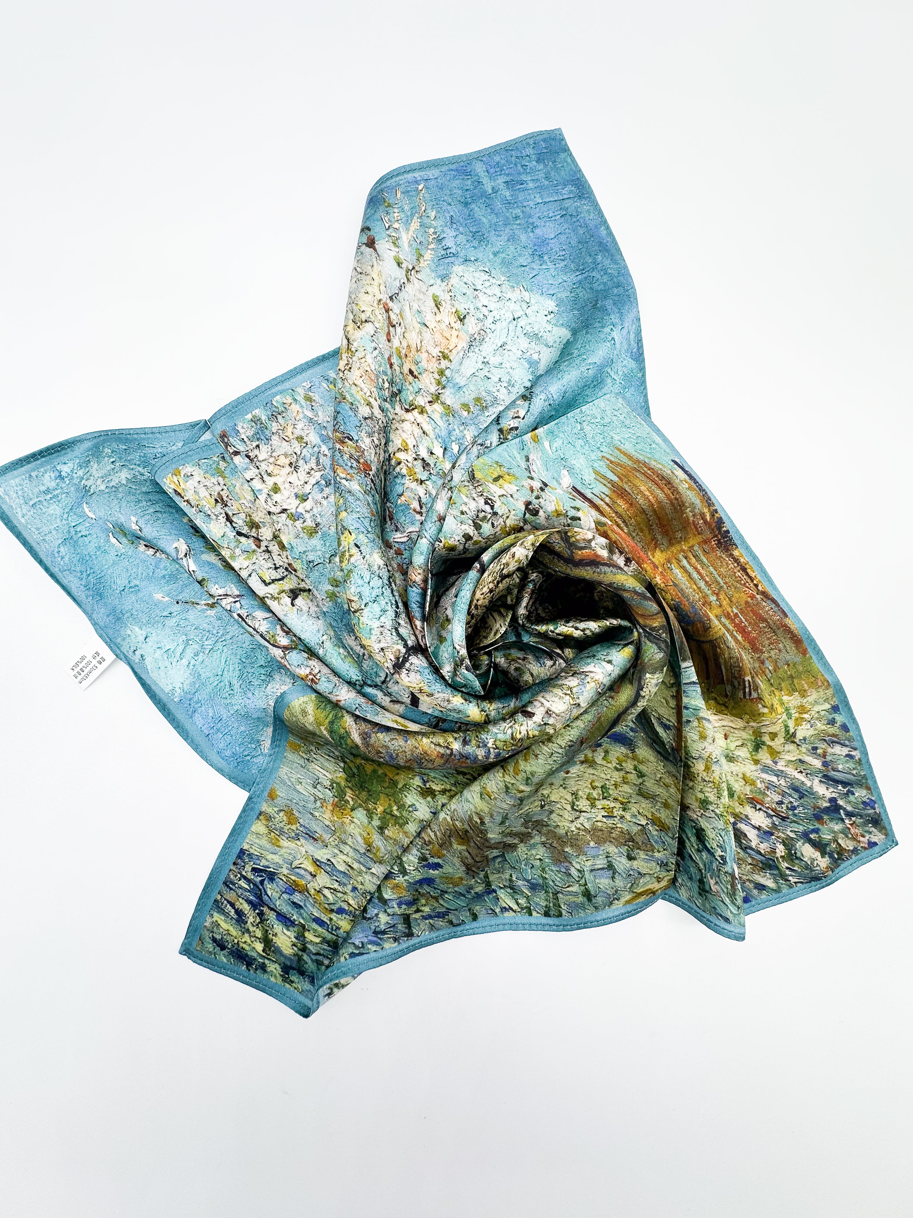 Small-sized natural silk scarf, size 53x53 cm. To learn several ways to use this scarf and get inspiration for your style, visit the "Tips and Articles" section