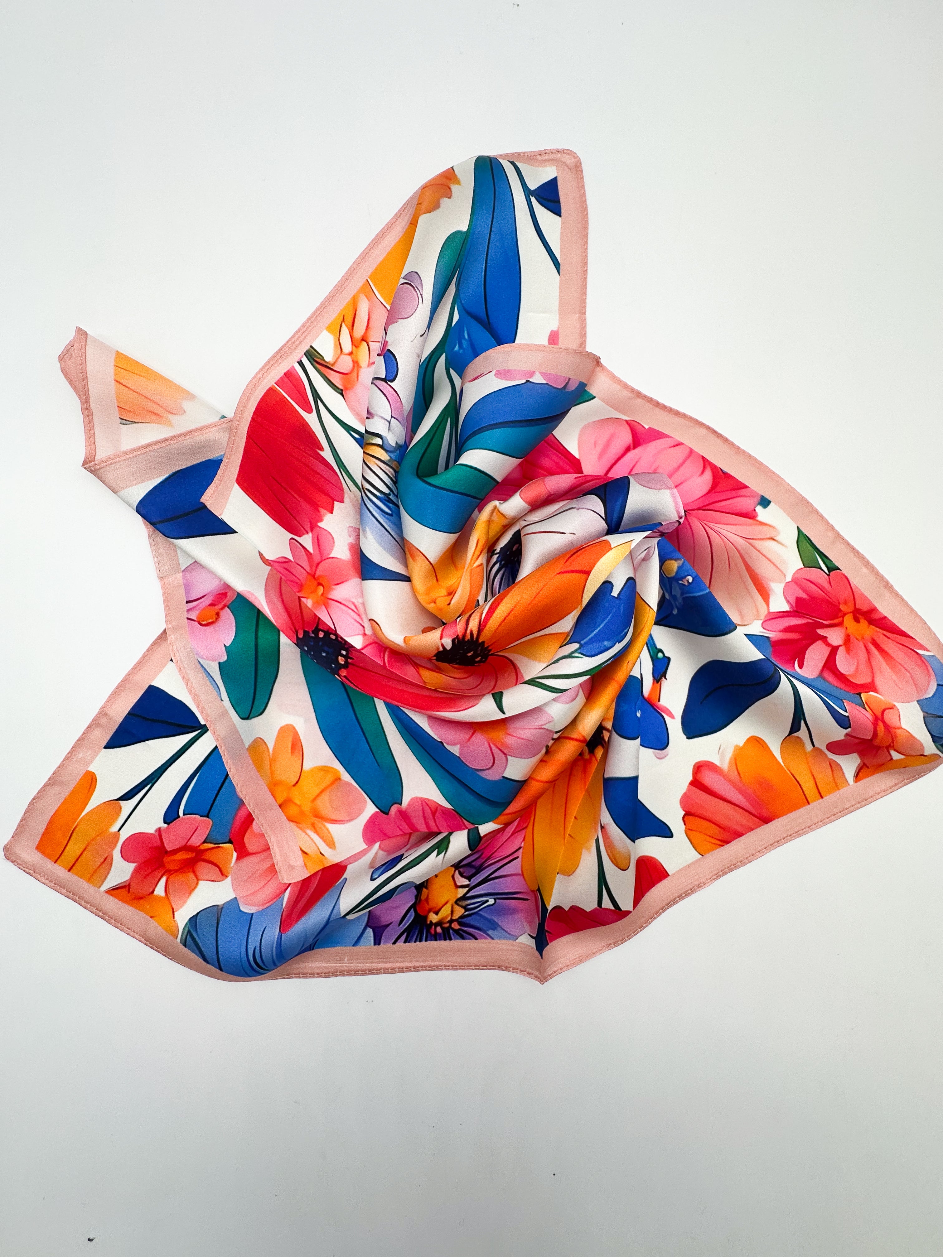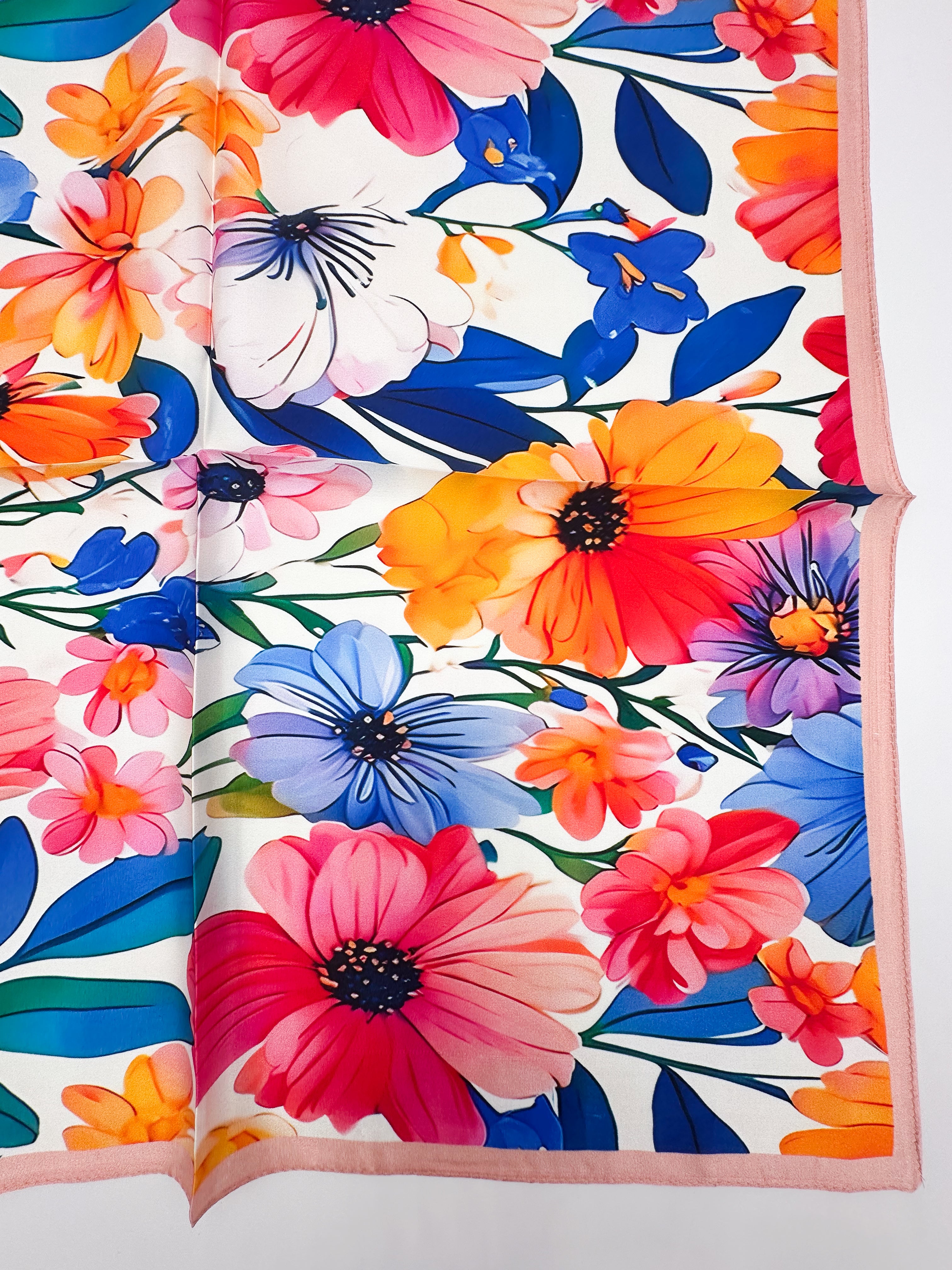 Small-sized natural silk scarf, size 53x53 cm. To learn several ways to use this scarf and get inspiration for your style, visit the "Tips and Articles" section