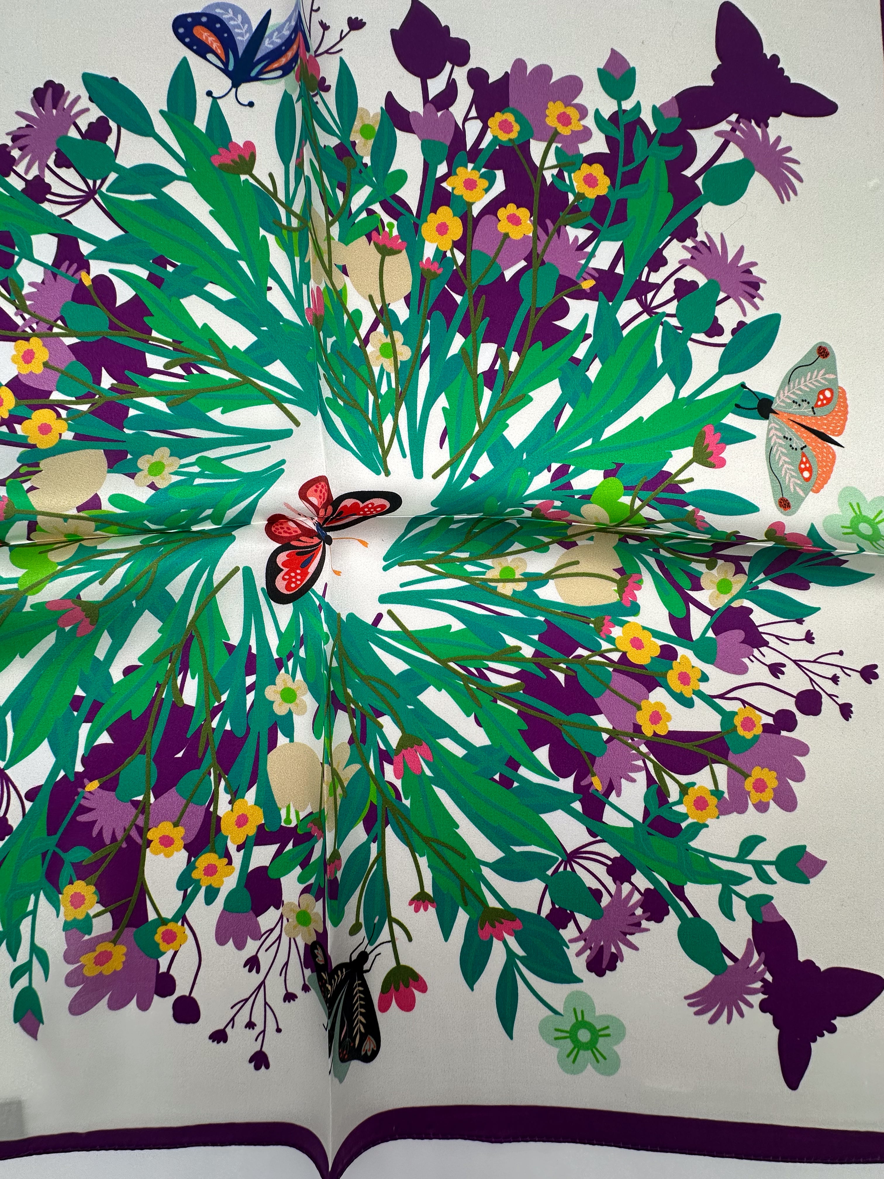 Small-sized natural silk scarf, size 53x53 cm. To learn several ways to use this scarf and get inspiration for your style, visit the "Tips and Articles" section