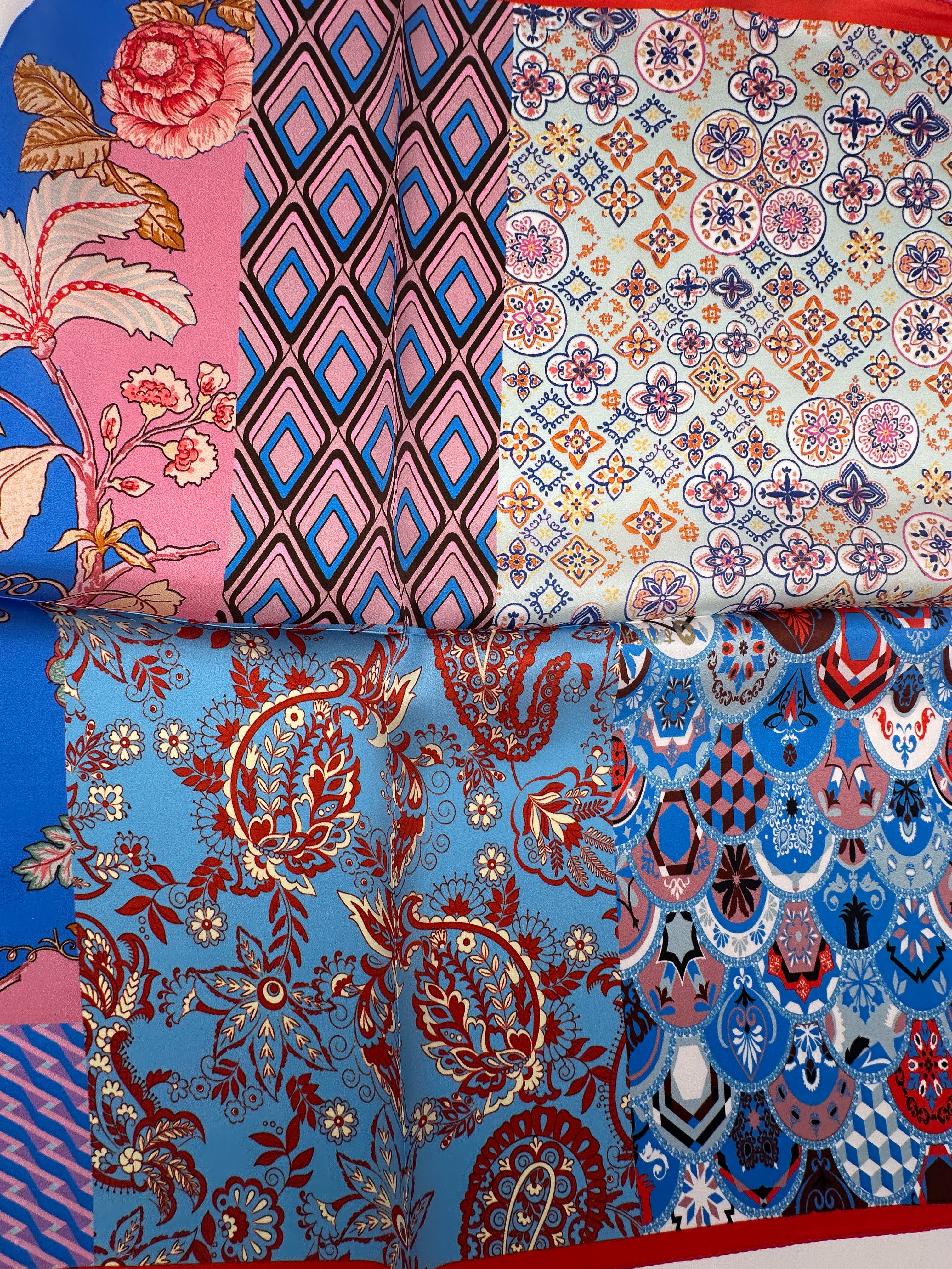 Small-sized natural silk scarf, size 53x53 cm. To learn several ways to use this scarf and get inspiration for your style, visit the "Tips and Articles" section