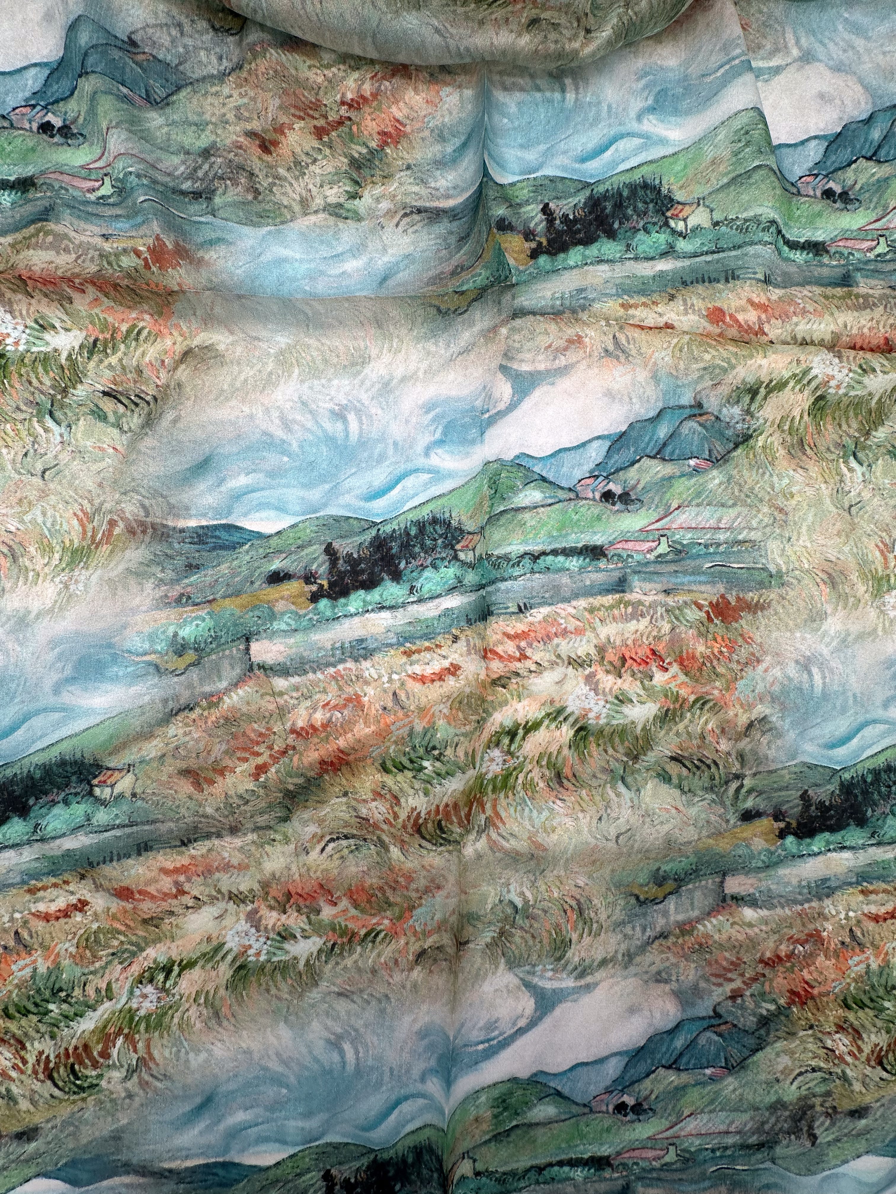 A natural silk chiffon scarf is perfect for wearing with a dress, top, as well as a spring coat or other light outerwear! This scarf is airy, transparent, and light with a beautiful fabric drape.