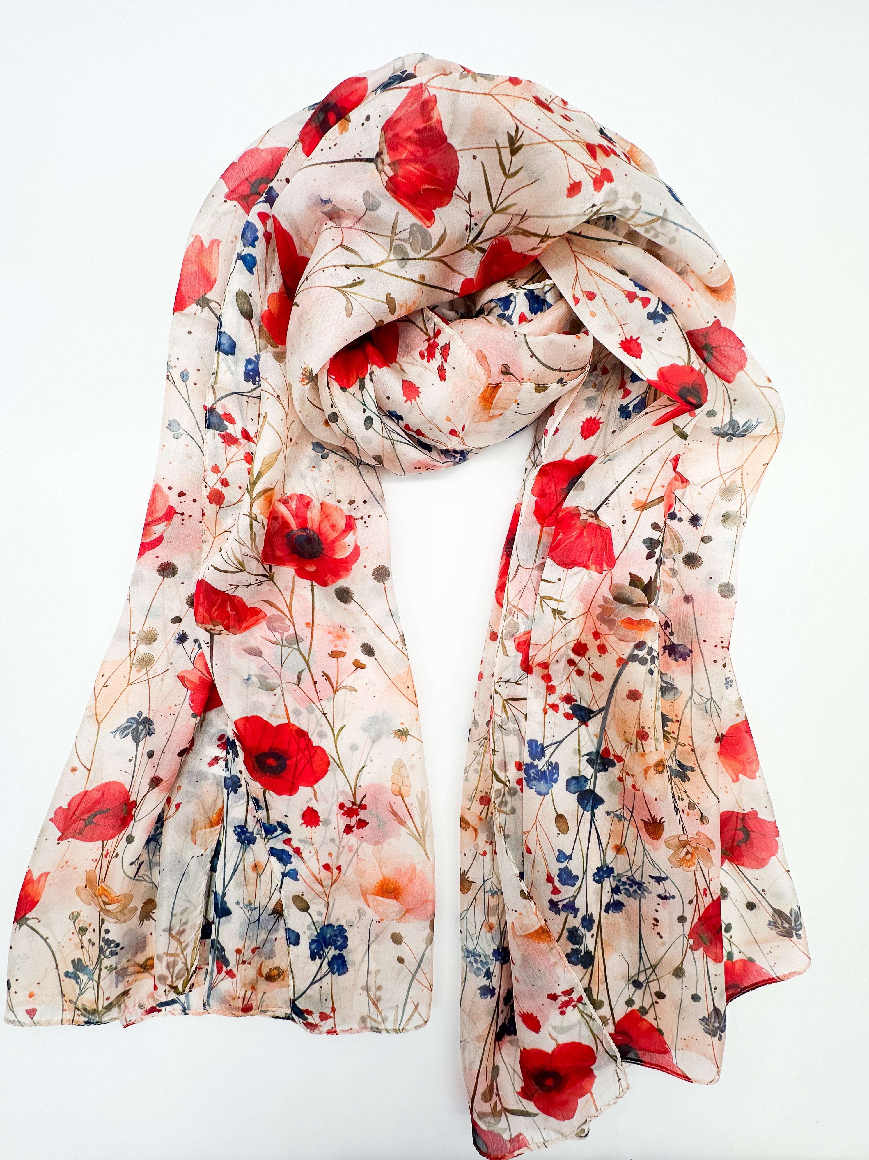 A natural silk chiffon scarf is perfect for wearing with a dress, top, as well as a spring coat or other light outerwear! This scarf is airy, transparent, and light with a beautiful fabric drape.
