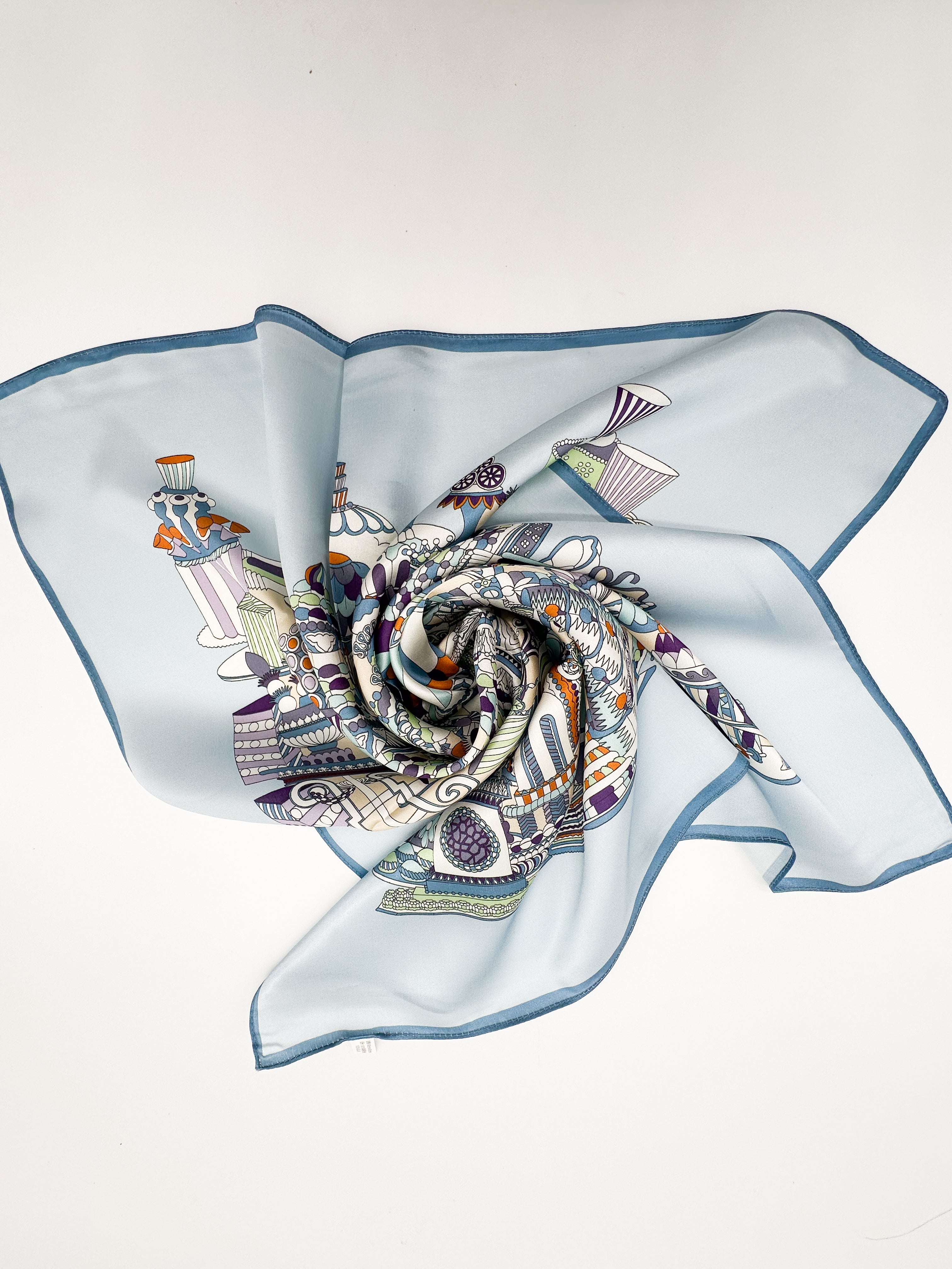 Natural silk scarf 68x68 cm suitable for wearing with dresses, blouses, and sweaters, as well as tying around the wrist or as an accessory for a bag.