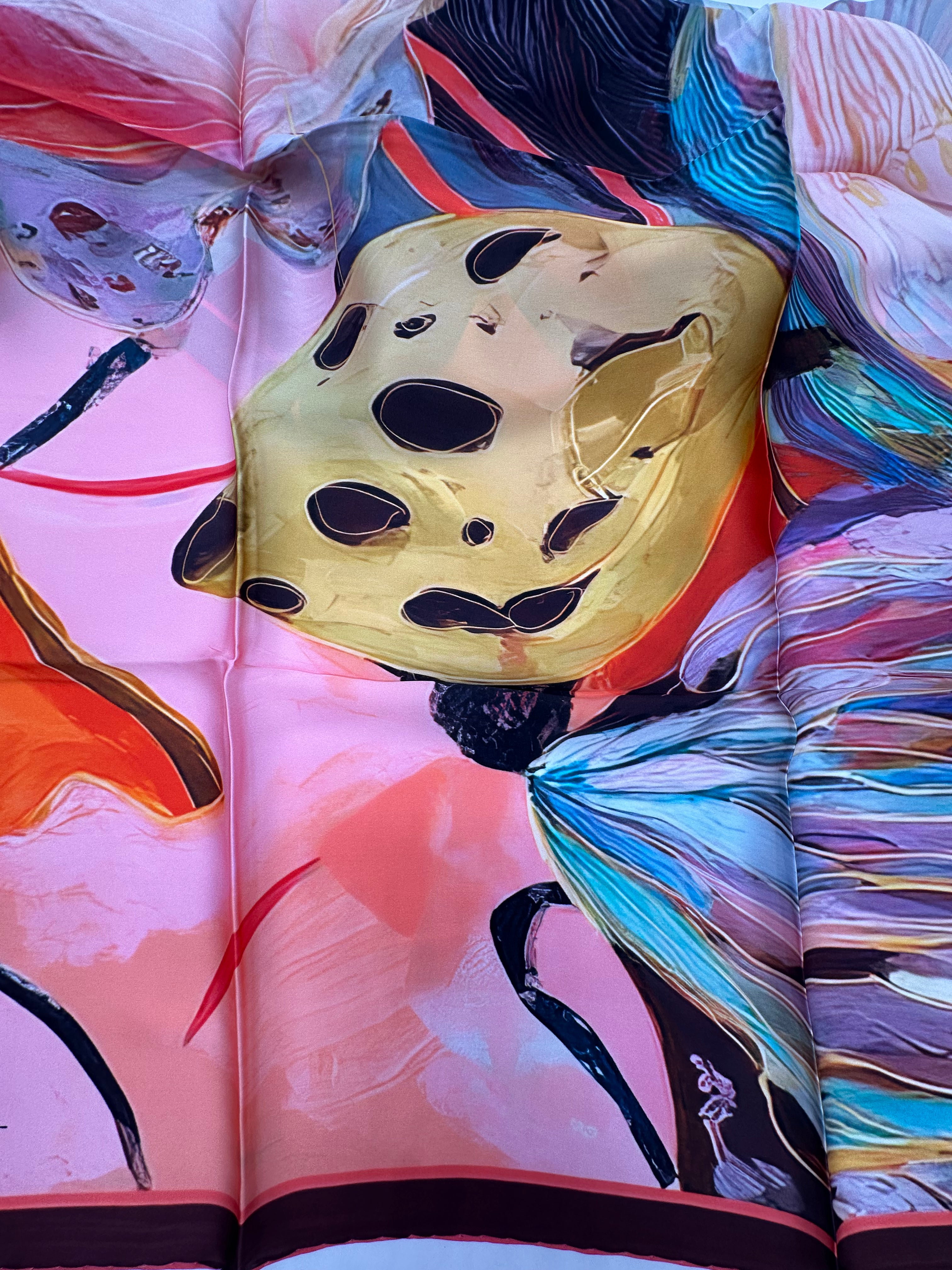 Natural silk satin scarf 107x107 cm - this silk scarf is characterized by a beautiful shine and a rich fall of fabric, hand-finished edge. This scarf is an exclusive product and designed for delicate veiling, suitable for hand washing only or dry cleaning!