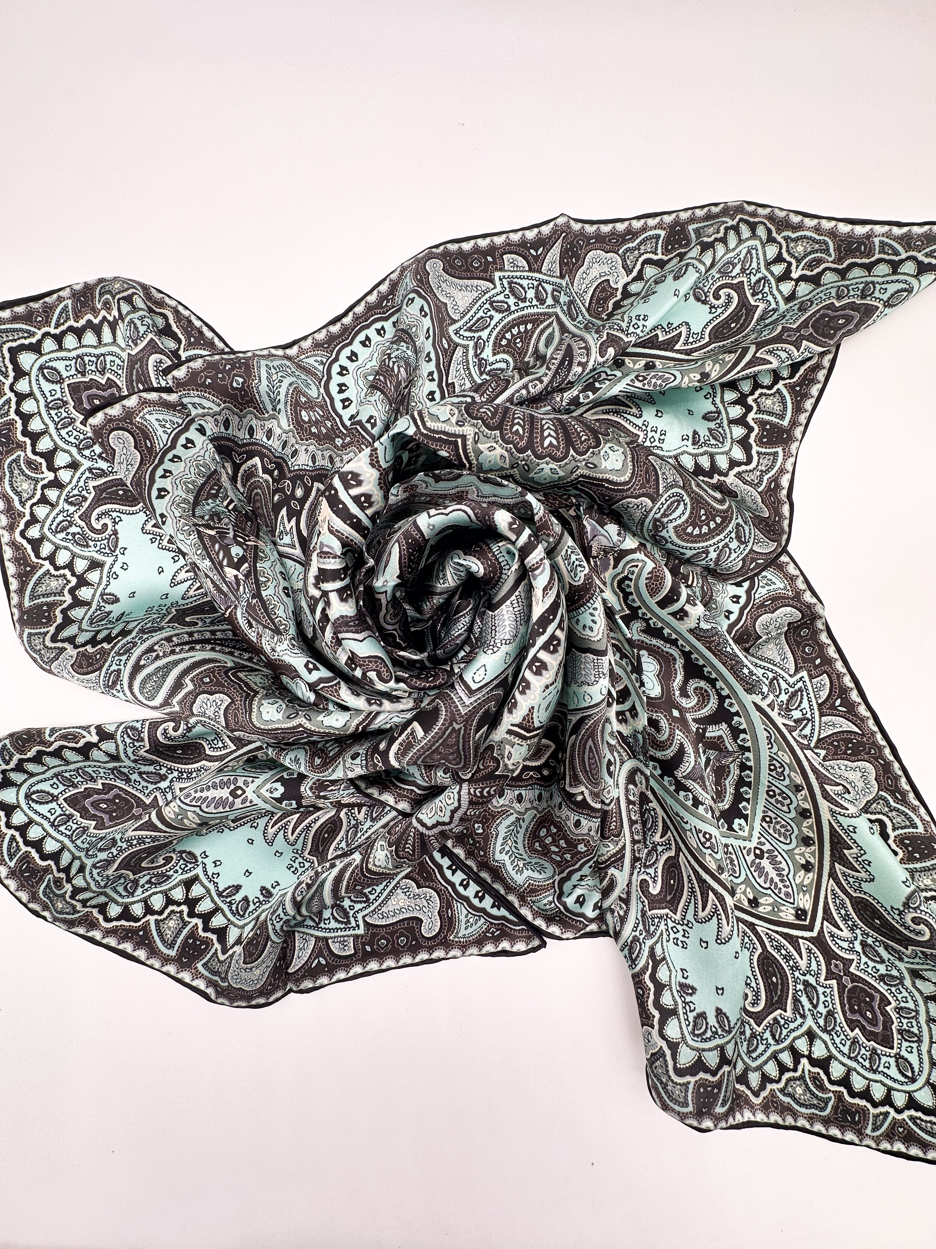 Natural silk satin scarf 108x108 cm - this silk scarf features a beautiful shine and rich fabric drape, with a hand-finished edge. This scarf is an exclusive product intended for delicate wearing, suitable for washing only by hand or dry cleaning!