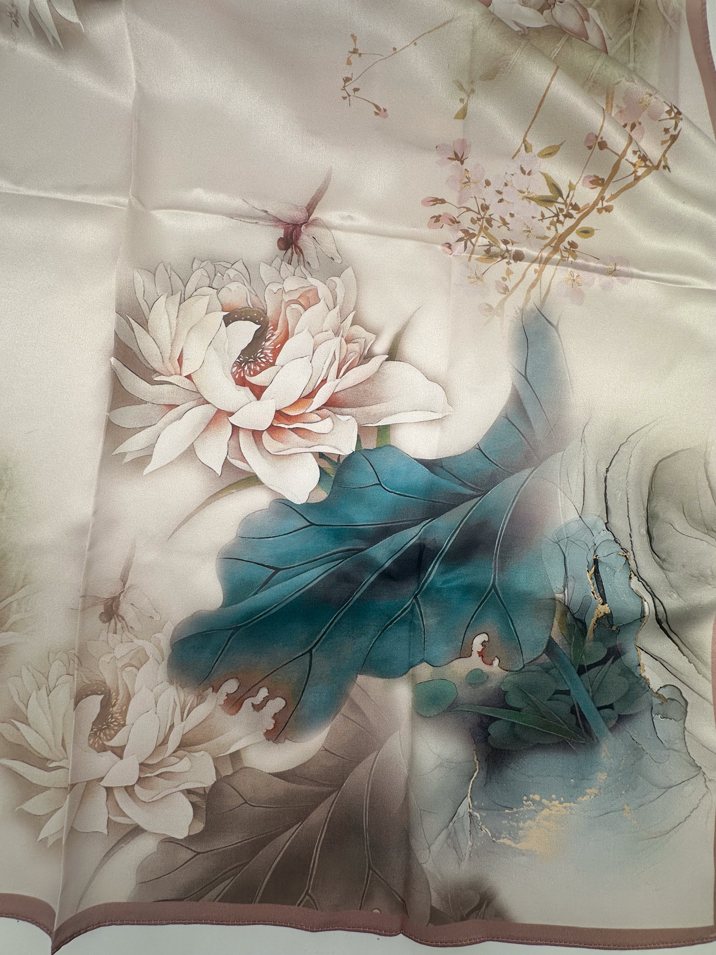 Natural silk satin scarf 90x90 cm "Flight of the Dragonfly"