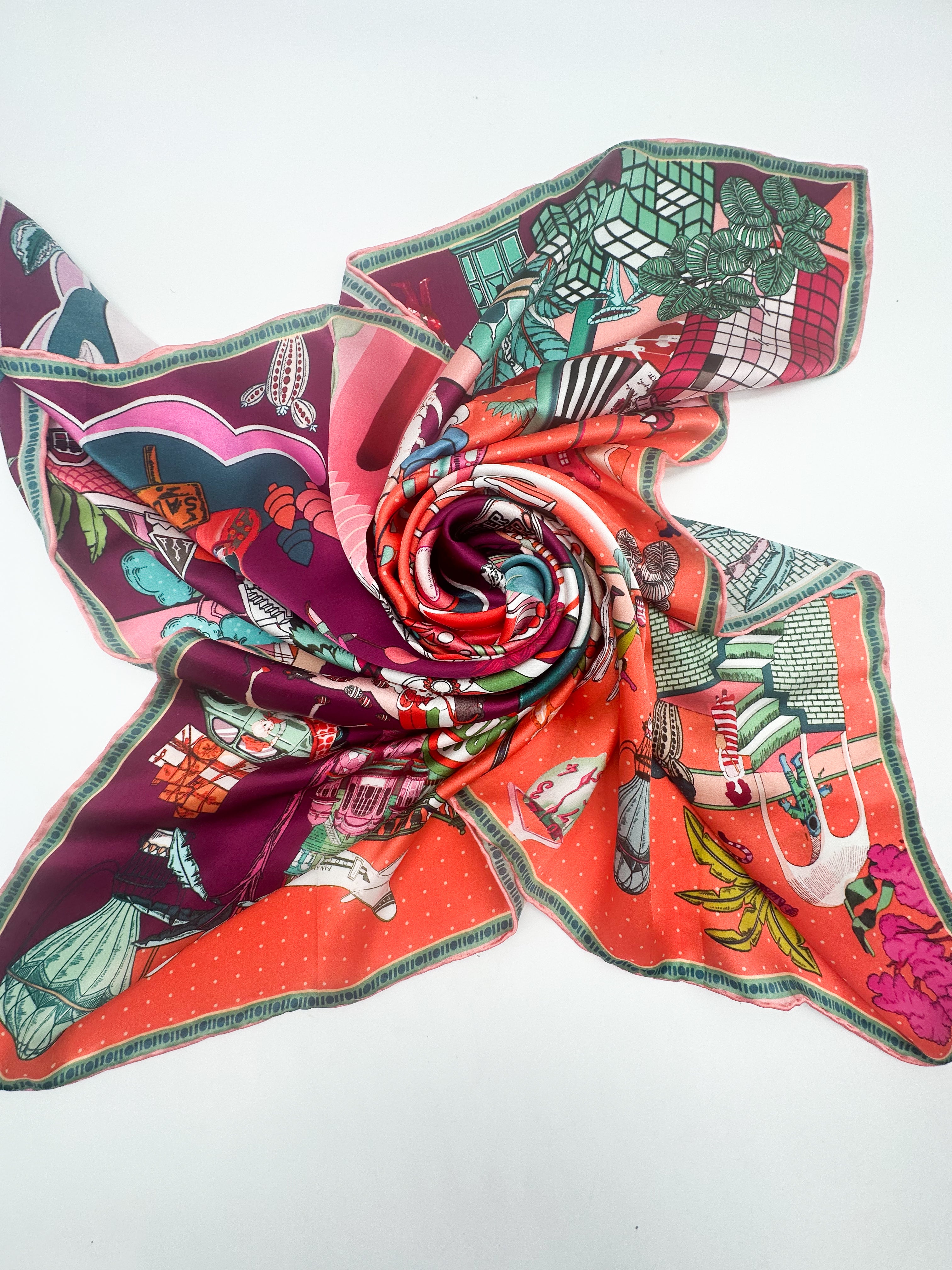 The silk scarf is ideal for wearing around the neck, as a turban, or as an accessory on a bag.