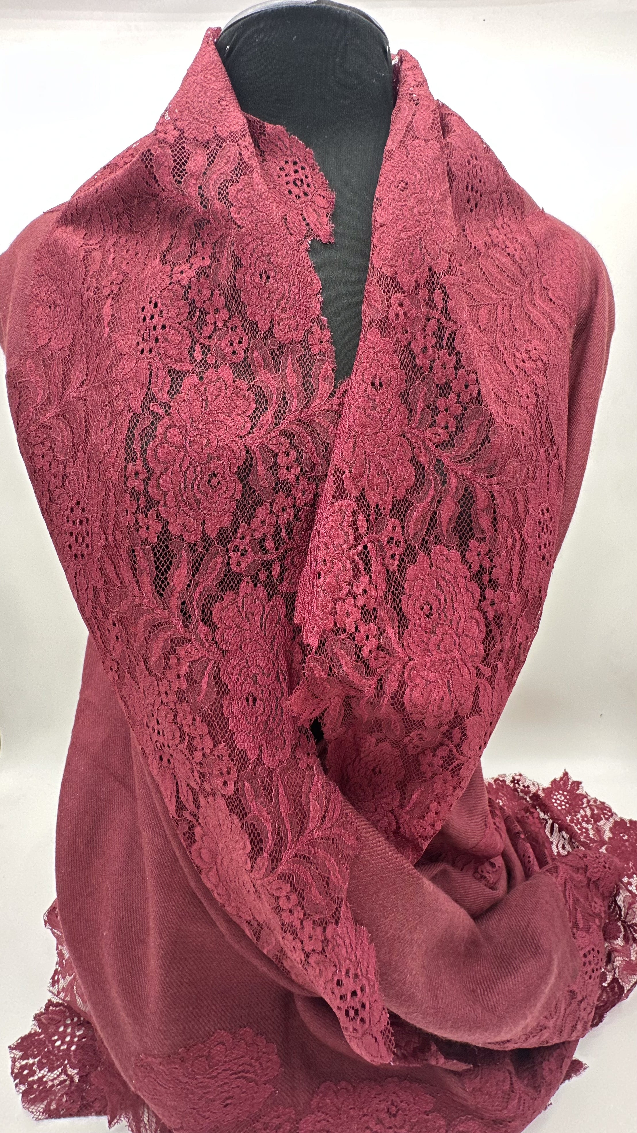 Premium quality scarf 100% cashmere! Large-sized luxurious scarf with French lace, perfect to pair with a coat or an elegant slip dress for special occasions.