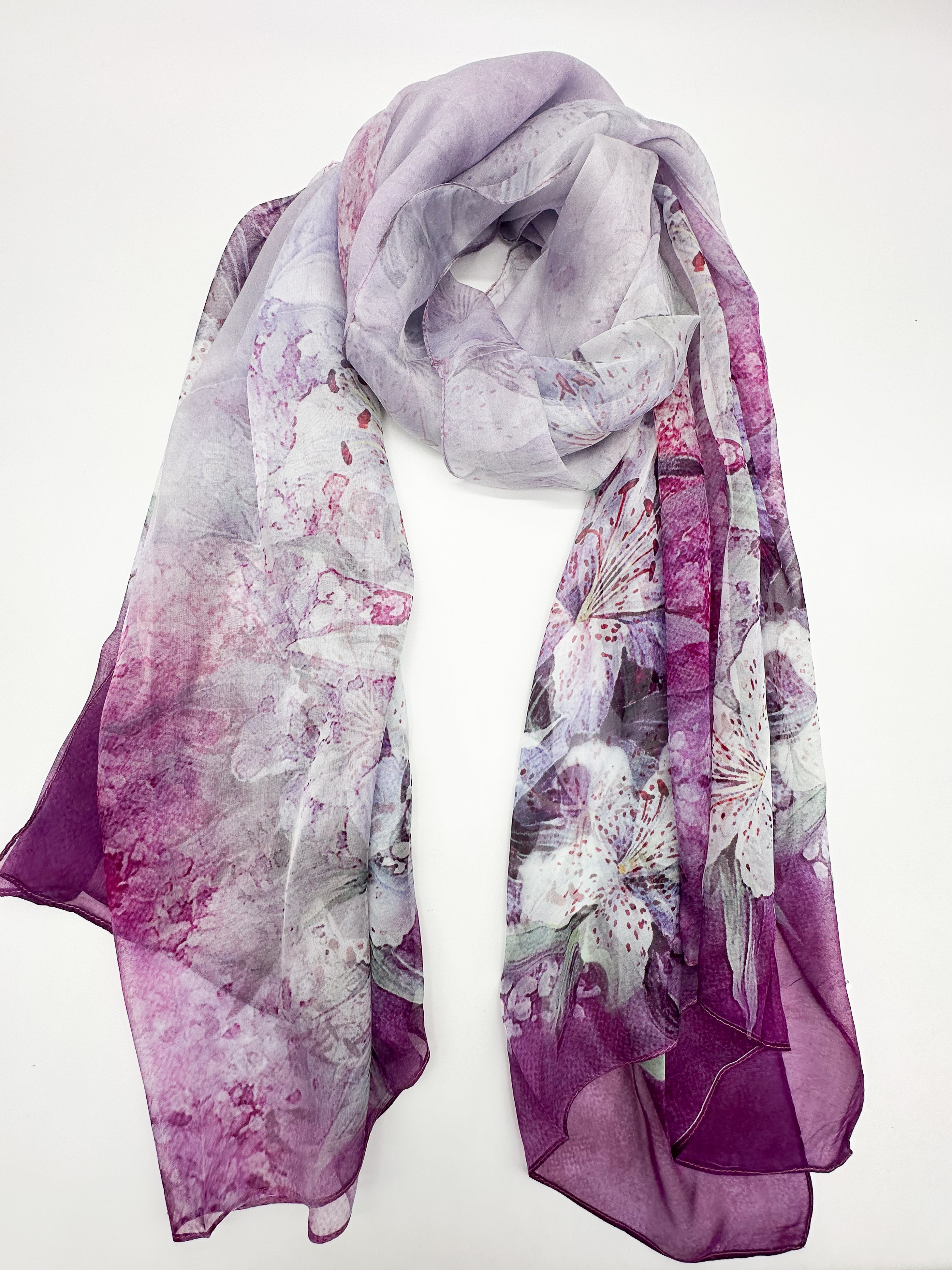 The natural silk chiffon scarf is perfect for wearing with a dress, top, as well as a spring coat or other light outerwear! This scarf is airy, sheer and lightweight with a beautiful drape.