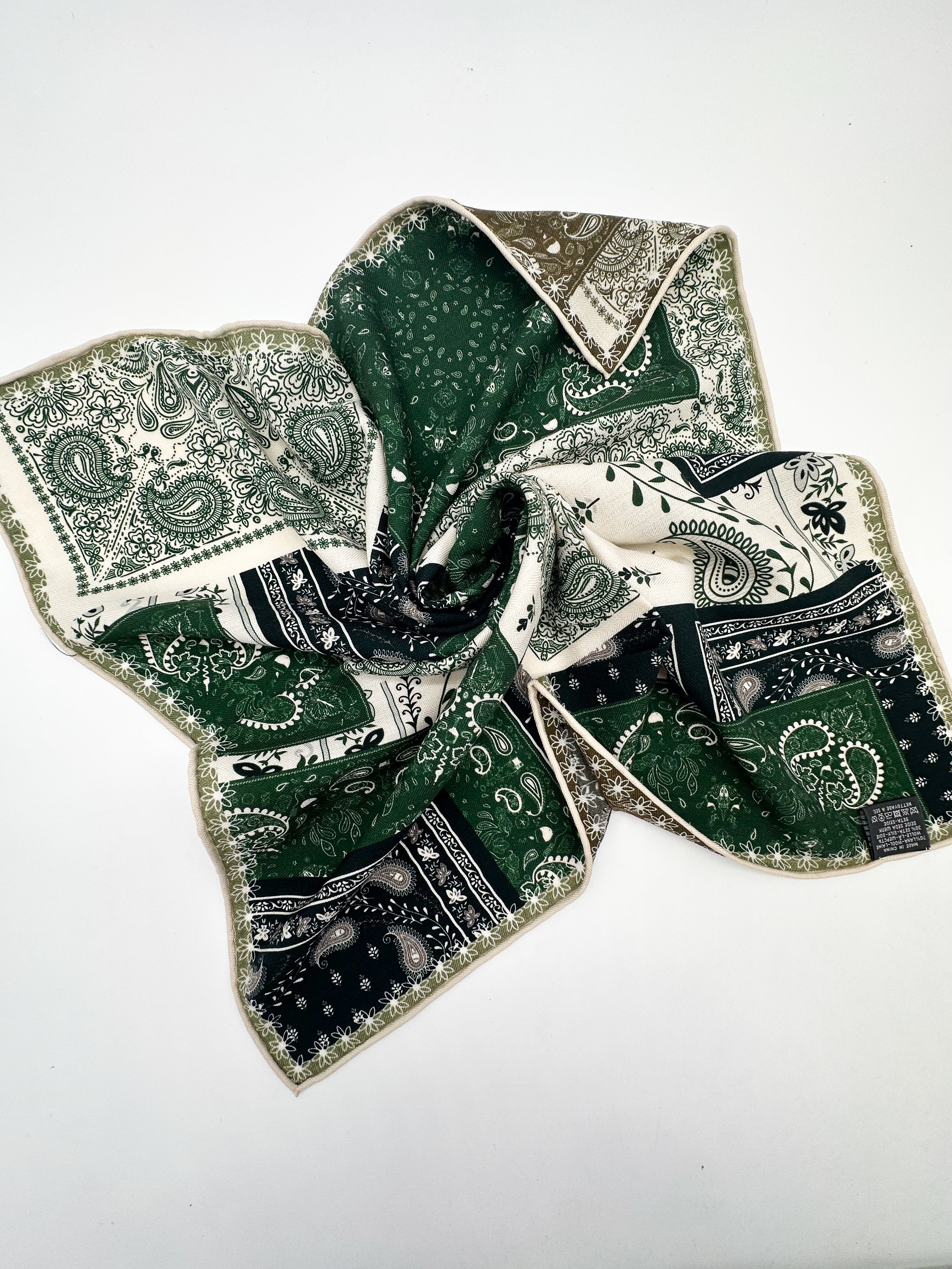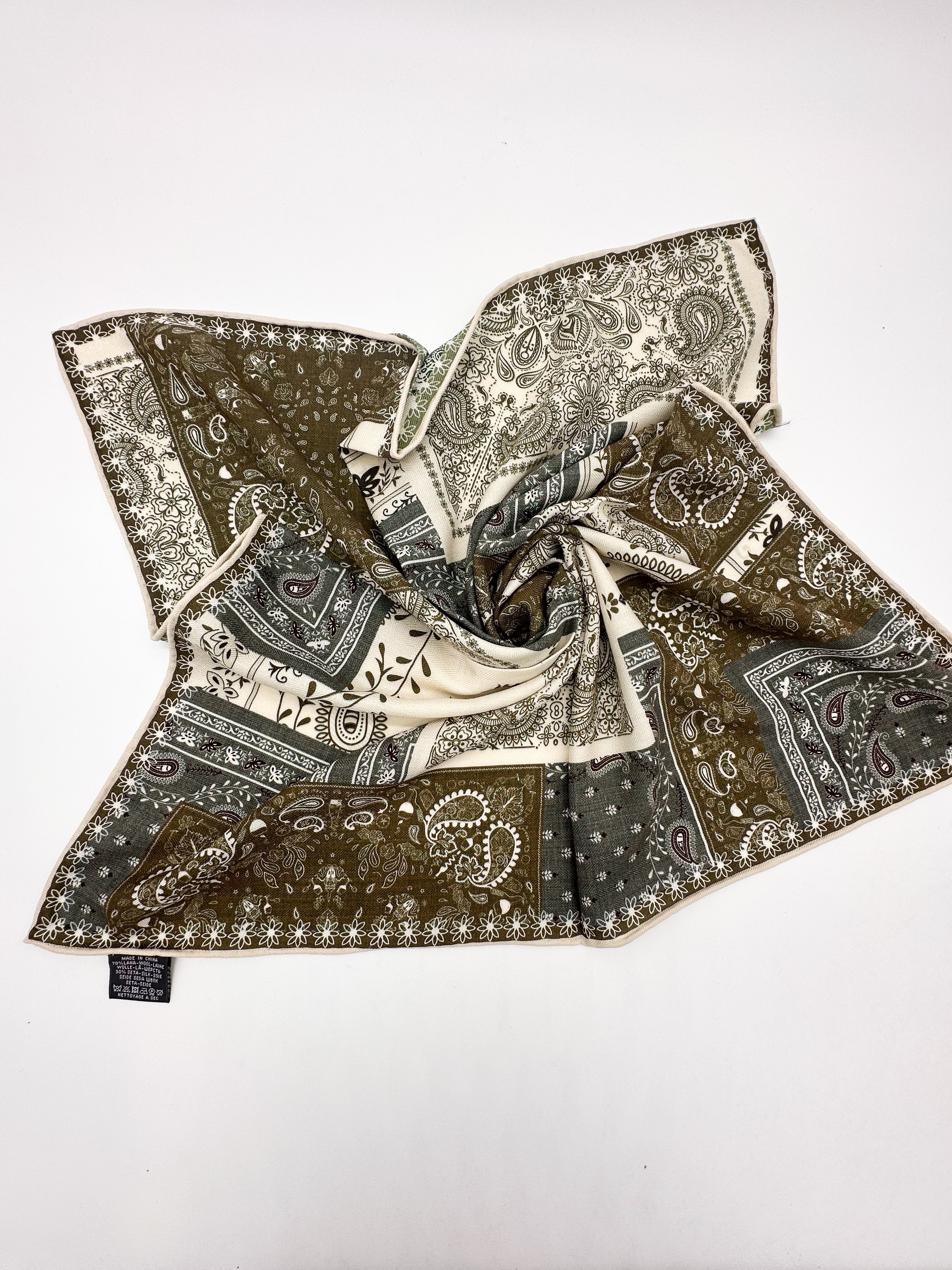 A 60% wool and 40% silk scarf suitable for wearing with coats and jackets during the winter season. This product has a hand-finished edge.