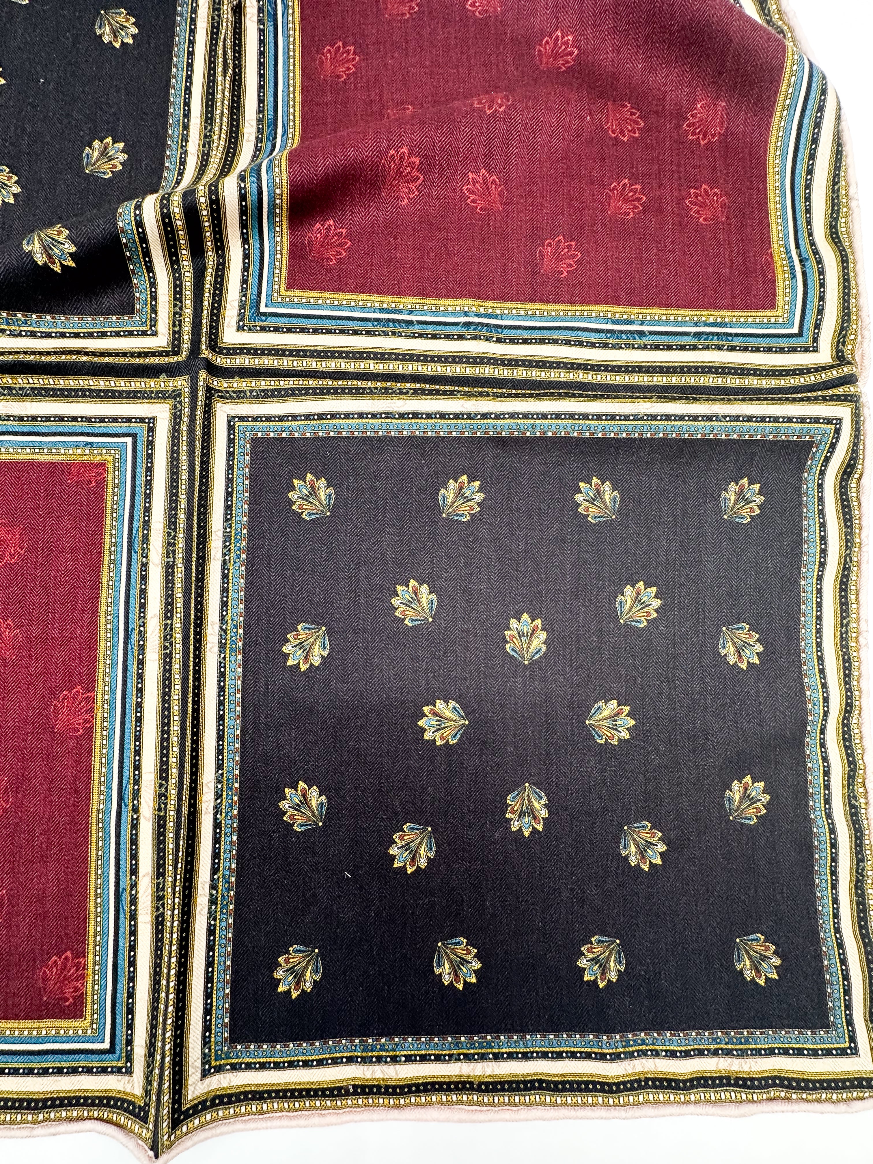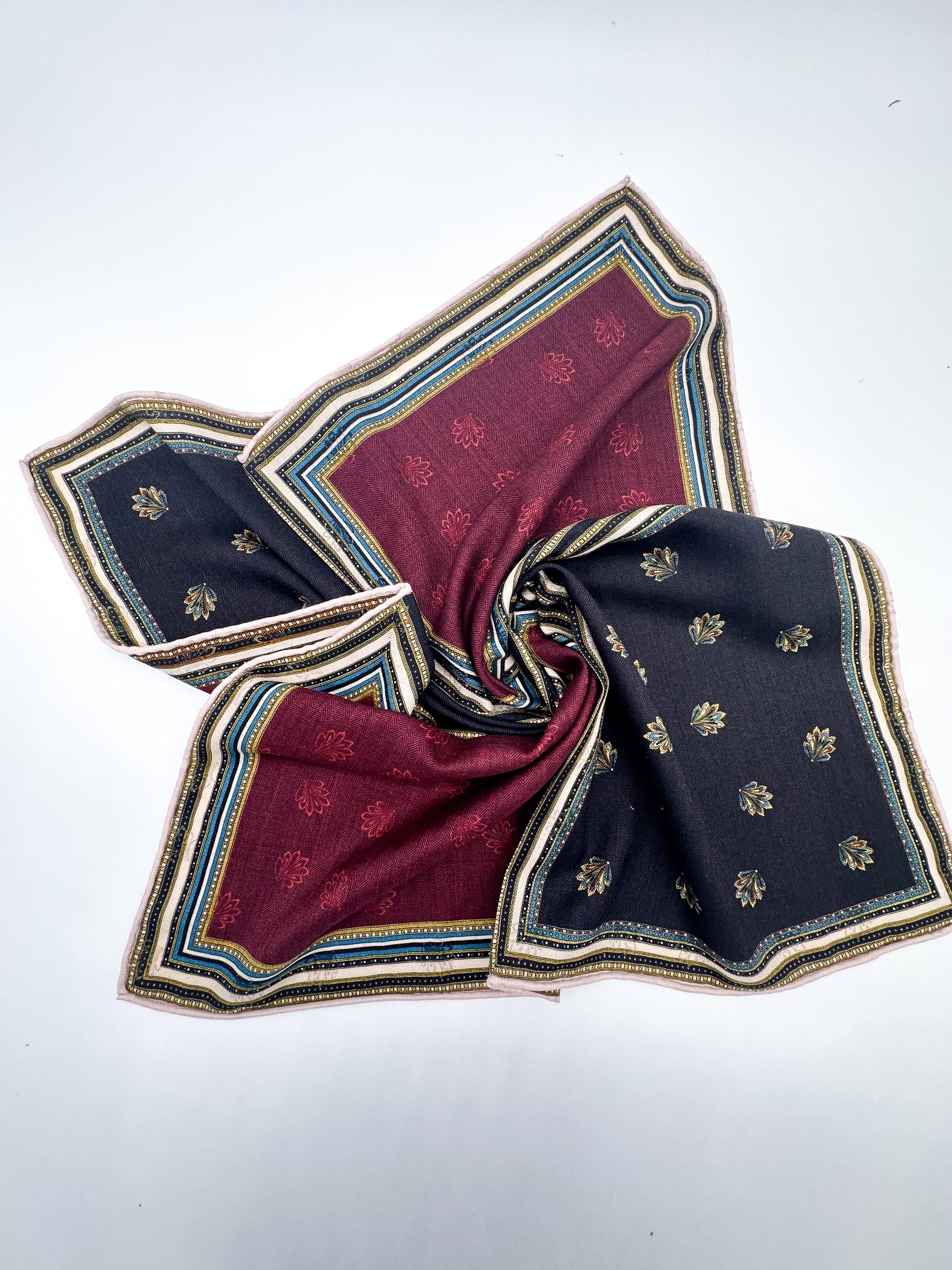 A 60% wool and 40% silk scarf suitable for wearing with coats and jackets during the winter season. This product has a hand-finished edge.